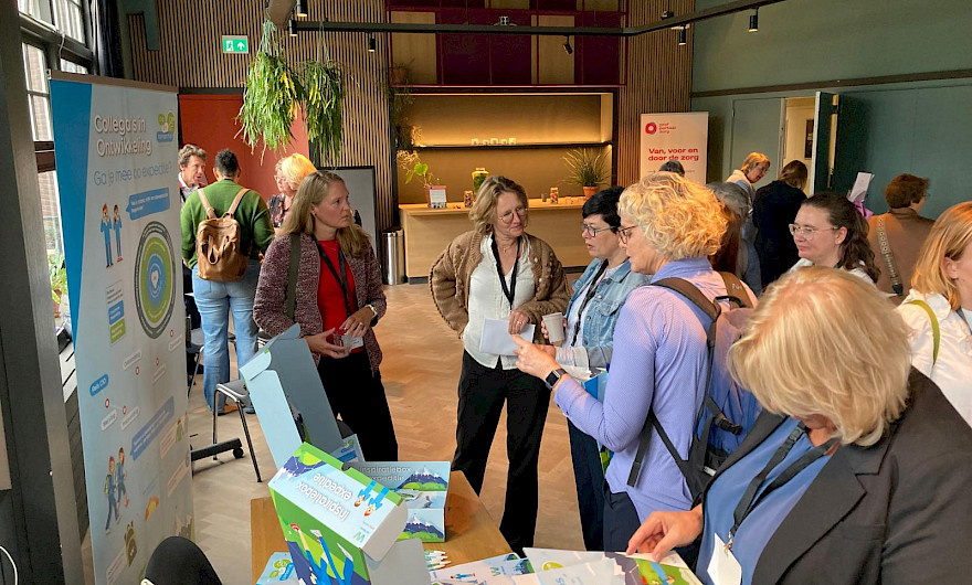 Naast de thematafels waren er diverse workshops waarin deelnemers praktisch aan de slag konden gaan met nieuwe kennis en technieken. Bellis van den Berg en Brent Opmeer van Vilans begeleidden een workshop over datagedreven leren in de zorg, een onderwerp dat voor veel deelnemers nog relatief nieuw was en daarom een eerste kennismaking vormde.
